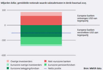 También sigue el banco central holandés preocupado por la escasez de dólares en el sistema bancario europeo, en particular si nos cierran el grifo. En rojo los dólares recibidos (en rojo oscuro de otros bancos, mientras nos sigan prestando dólares, en rojo claro el resto), y en verde los que se han inyectado (verde oscuro invertido por fondos de inversión USD, verde intermedio las inversiones en USD de fondos de pensiones, y verde claro las inversiones en USD del resto de inversores). Pero viendo así el gráfico, lo peor que nos puede pasar si nos cierran el grifo es que nos obliguen a vender nuestras posiciones en USD... ¿tampoco es para tanto?
