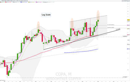 @deslorian COPA, velas mensuales tras incursión fuera de las bandas bollinger, cierre con shooting star y en resistencia de canal señalo velas similares pasadas y voy tirando fibos por si confirma corrección en Feb/Marzo