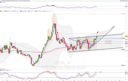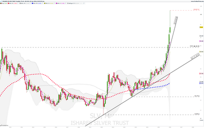@e-t82 OD7A Otra vela mensual con mecha pronunciada por arriba, esta vez tiro fibos de corrección la zona de 3-3,13 a mi me parece razonable para Feb/Mar , pero hay que decir que la vela actual mensual no es para nada tan mala como las muchas que he visto por ahi fuera. - PLATA - SLV otra dramatica shooting star mensual no veria nada descabellado una bajada a la MM5 mensual ( morada ) , en Enero por los 55$ pero con subida muy empinada para Febrero podrían ser los 58-59$ aprox. Si bajara a ese nivel y lo perdiera creo que entraria en juego el anterior maximo de 2011 zona 48$