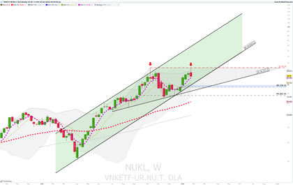 NUKL dentro de canal de largo plazo pero incluyo la posibilidad de ese triangulo ascendente ( sesgo bullish ) al ver el doble rechazo en el mismo nivel.