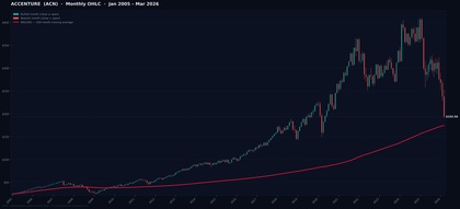 No estoy delante del ordenador, he creado la imagen con Claude (el mismo que la está matando) , esta cerca de su media de 200 en mensual, que si conoces mi forma de pensar (basada en que siempre pasa esto), los activos vuelven a su media de 200 meses, pero luego se pueden estancar ahí durante años, un rebote "en V" en la MM200 mensual es algo tan inusual que creo que no lo he visto nunca, mejor olvidarse y pensar que la MM200 es su destino final por muchos años.
