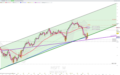 MSFT semanal Microsoft , esa morada comentada era la zona de carga, veremos como termina la semana pero diría que cada dip seria una oportunidad de compra ...