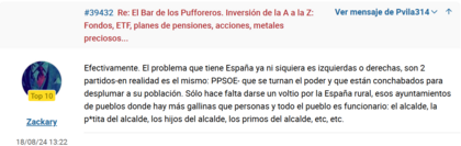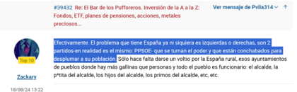 Dicho esto, he encontrado algunos mensajes míos con opiniones que creo que no son sospechosas ni de atacar a ningún partido político (que eso no lo vas a encontrar), ni tampoco en favor precisamente de los que vosotros atacáis constantemente, lo que demuestra que yo no me dedico a lo que hacéis vosotros, a ver si te enteras ya...