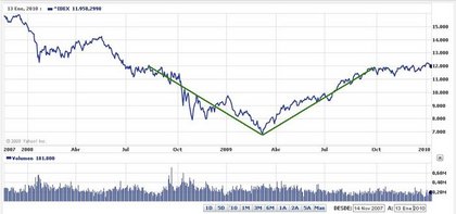 El Ibex está en 11.958,30, aprox. 12.000 que tal vez le valga de soporte pero la bolsa ha recibido tres golpes: