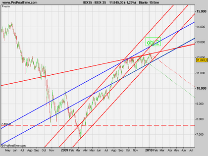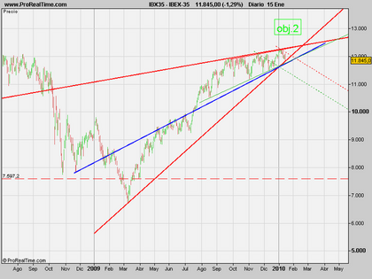O es que desarrolla un canal alcista y las línea de tendencia rojas marcan la dirección dentro del canal