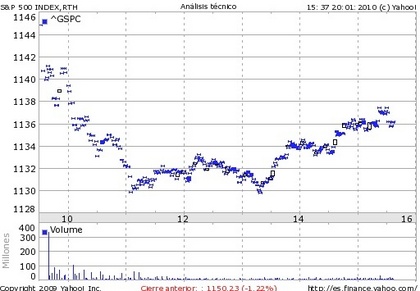 Parece que el S&P se sujeta (o lo sujetan?) en el soporte de los 1130. A vigilar si en la ultima hora de negociacion SuperMD viene al rescate y mañana volveriamos al bamboleo