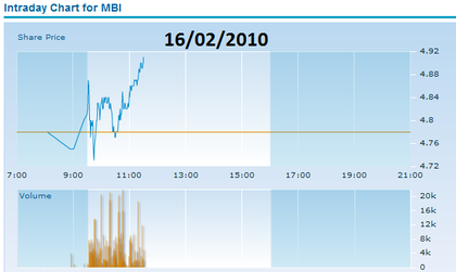 Hoy había abierto a 4.78$ y ya está a 5$. Un 4'5% de subida, a media tarde!!!