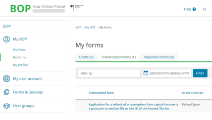 El año pasado realicé una solicitud para la devolución de los impuestos de la Hacienda Alemana y podía seguir el estado del formulario en una página como esta: