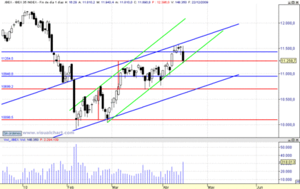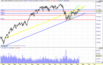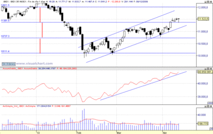 El ibex ha seguido en el desarrollo de un canal alcista.
