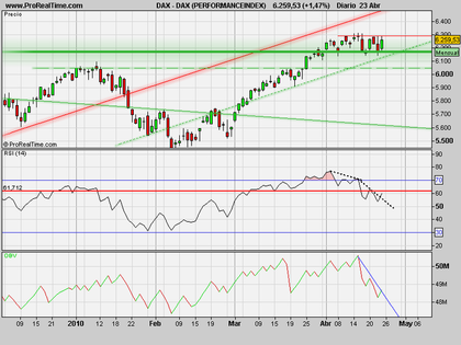 Aunque se mantiene en zona de compras, se ha solapado frente a su resistencia en 5870