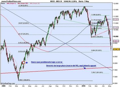Los 8.818 (61,8% del retroceso de la anterior subida) tiene también su importancia, si se pierde hay posibilidades de que se vaya al origen como dices en los 6.700, que fue justo en esas fechas del 9/3/2009 donde la perforó y recuperó subiendo hasta los 12.246. Además esa zona de los 8.000 coincide con el hueco que comentamos, por lo que es una zona relevante.