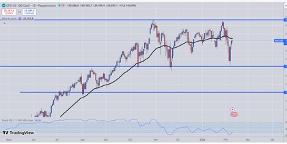 Hoy cierre semanal, el nasdaq100 en soporte, intentará rebotar y arreglar algo la semana que no ha sido buena por el momento, primera semana de febrero movida y donde por primera vez en mucho tiempo se ven grietas en el sentimiento de mercado