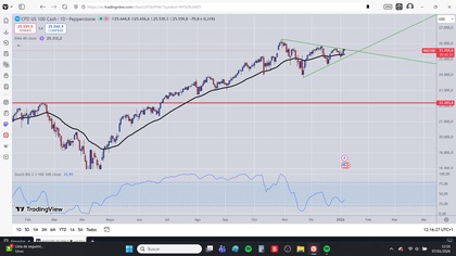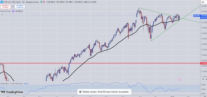 El nasdaq100 sigue en ese misterioso triangulo encogido cada vez mas...