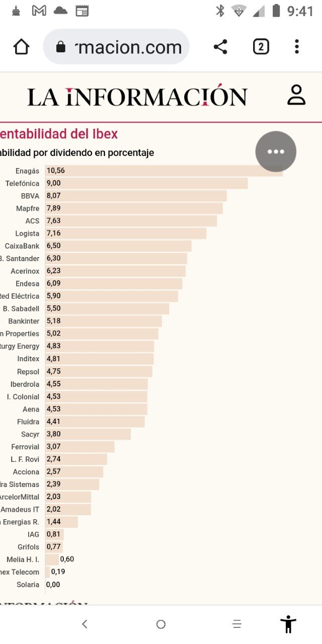 Buenos días. Valores y noticias a destacar en la apertura española: Santander nombra a Ángel Rivera nuevo consejero delegado en España El gobierno estudia rebaja del IVA de algunos alimentos al 4% (Cinco Días) Greencoat puja por las renovables de Iberdrola con Norges como favorito (Cinco Días) DIA vende sus 1015 tiendas de Clarel al fondo portugués C2 El BCE pide más capital a BBVA y Santander ante el parón económico (El Economista) Aena disparará ingresos con el mayor concurso de ‘duty free’ del mundo (Expansión) Aena arrebata la exclusividad a Dufry en la puja de sus tiendas (Cinco Días) ABANCA inicia negociaciones en exclusiva con Crédit Mutuel para adquirir Targobank España (Reuters) Hoy hay datos de ocupación hotelera. Cellnex lanza un despliegue masivo fotovoltaico en sus torres de móviles (Expansión) Fuente: zonavalue.com Un saludo!