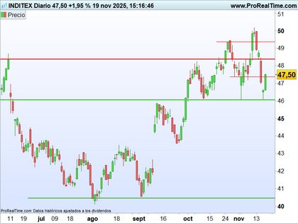 Target retrocede un 0,95 % hasta los 87,69 dólares. El grupo minorista ha revelado unas ventas trimestrales que han descendido un 1,6 % hasta los 25 270 millones de dólares, por debajo de las expectativas. Por el contrario, el beneficio por acción se situó en 1,78 dólares durante el tercer trimestre, que finalizó el 1 de noviembre, mientras que el consenso apuntaba a 1,72 dólares. El beneficio neto registró una caída del 19 %, hasta los 689 millones de dólares. La empresa estadounidense reiteró sus previsiones, que apuntan a un descenso de las ventas de un dígito bajo. Los analistas esperan 30 660 millones de dólares.