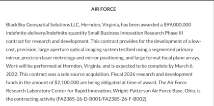 #316 Re: BlackSky (BKSY) Ver mensaje de 1755 Top 100 ErickSpace369 Seguir 08/03/26 15:12 Aquí lo explican más: El Conocimiento es Poder... 1 Responder