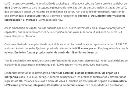 El equipo de comunicación financiera también se encargó de diseñar y ejecutar la estrategia de comunicación que acompañó la incorporación de LLYC a BME Growth.