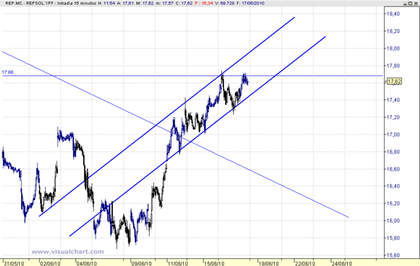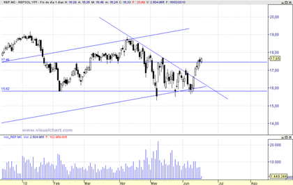 Repsol ha hecho lo mismo, desde día 8 solo ha reculado un poquito entre los cierres de los días 15 y 16. Y ha subido un 11 % desde día 8. (bien es verdad que su bajada previa era bastante inferior a las de los dos anteriores).