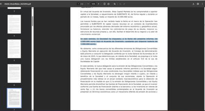 Es decir, la empresa pagaba por una financiación de 10 millones, a pesar de que preveía usar solo un tercio, lo expliqué. Esto olía mal desde el inicio. Una cosa es lo que estaba escrito, y advertí, que una cosa es que la empresa dijera que solo iba a disponer de entre 3-3.5 millones y otra cosa es lo que iba a hacer después, en este caso, parece que cumplió con la documentación presentada. ¡Recordadlo! Incluso corregí a Iñaki de PCBOLSA: la empresa no decía que iba a convertir los 10 millones, sino que preveía una cantidad mucho menor.