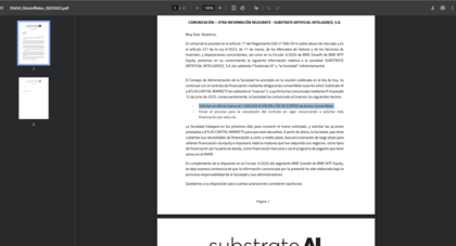 Extracto " A partir de ahora, la Sociedad, que tiene cubiertas sus necesidades de financiación a corto y medio plazo, buscará inversores de largo plazo para obtener financiación vía equity e impulsará, dada la madurez que han adquirido sus negocios, otros tipos de financiación por la parte de deuda, como financiación bancaria o vía el programa de pagarés que tiene activo en el MARF "