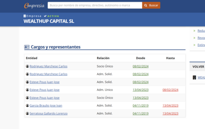 Recordemos que el Presidente (Serratosa) y el CEO (García Braulio) estuvieron vinculados a Wealthup Capital SL, que ahora es nuestro principal financiador y un vehículo constante en la sociedad.