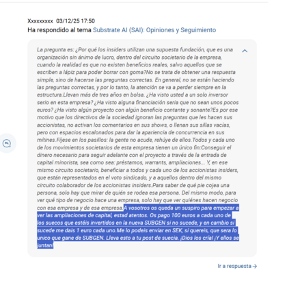 La vinculación de Assured Mind con ZONA VALUE (cuyo administrador y socio están ligados a esta) sugiere que no es un inversor externo serio, sino un mecanismo para meter dinero por un lado y sacarlo con comisiones por otro, y volverlo a meter de nuevo, sin las comisiones, asegurando la venta de acciones al precio más bajo posible y maximizando el beneficio del círculo interno, mientras se diluye a los minoristas. Fruktansvärt! (¡Terrible!)