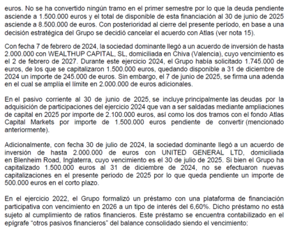 La única forma de sortear la quiebra técnica actual y financiar el proyecto AI Factory es mediante nuevas y urgentes vías de financiación que aporten capital real, imaginamos que la salida a bolsa de SUBGEN, dará un cierto respiro-