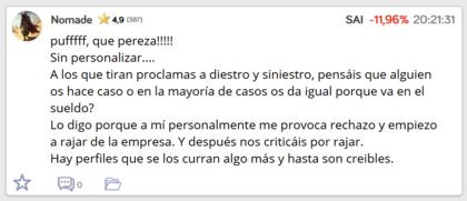 La empresa no quiere discutir ni debatir porque sabe perfectamente que lo que digo es verdad. Simplemente quiere contarles un sueño y les pide un coste por ello. Este forero no ha sido denunciado por la empresa y les ha retado a que formulen su denuncia contra mí. Sigue estando disponible mi abogado para lo que necesiten. No me echen la culpa a mí si un día reciben una comunicación al mercado de la CNMV; yo protejo mis intereses.