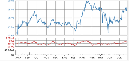 La verdad es que después de la gran subida que lleva desde Junio, tiene el RSI en fuerte sobrecompra. Lo normal es que limite sus subidas o incluso retroceda. Se le acaban las fuerzas alcistas, tiene que descansar.