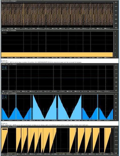 No sé si habréis visto estas bonitas figuras creadas por los ordenadores que ya controlan la mayor parte del volumen en los principales mercados y que realizan millones de operaciones en microsegundos. Por cierto, que hoy se cumplen 3 meses del batacazo de 1000 puntos del Dow en unos minutos, sin que nadie sepa qué pasó realmente, más allá de que las maquinitas tuvieron mucho que ver.