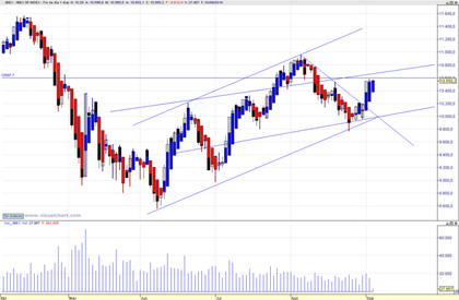 Ayer tuvimos un pivote a muy corto plazo. Unido a tres días consecutivos de pauta plana en el máximo de los volúmenes, espero una corrección en el muy corto plazo. La tendencia semanal sigue alcista. Yo aprovecharía recortes, si los hubiera, para comprar.