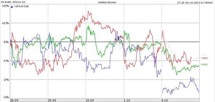 #1 El IBEX en 10.383 y bajando. Puedeque vuelva a hacer suelo en los 10.000... Buso Seguir 05/10/10 02:06 Tmbién bajan Dow Jones, Nasdaq y Eurostoxx y como todos están correlacionados... Puede que sean los últimos pasos atrás para tomar impulso. Tal vez sea el momento de encontrar fondos o ETFs sobre índices apalancados. Responder