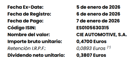 CIE Automotive logra un beneficio neto de 266 millones hasta septiembre, un 2,7% más que en 2024