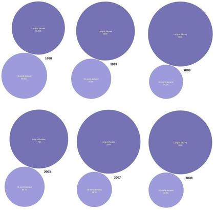 Os dejo una comparación de como ha ido evolucionando la compra especulativa en los contratos del Light Sweet Crude Oil (CL) contra la demanda física real del mismo.
