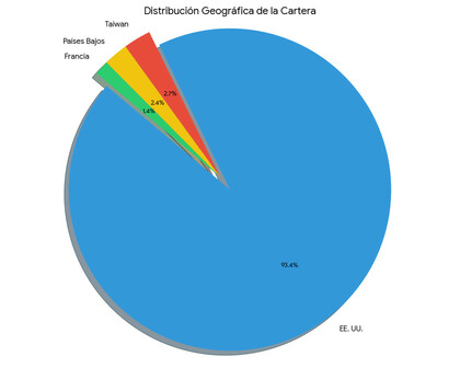 Dominio Total de EE. UU. (93.3%): La cartera es extremadamente dependiente de la economía y el mercado estadounidense. Prácticamente todo el riesgo país está concentrado allí aunque sean empresas globales.