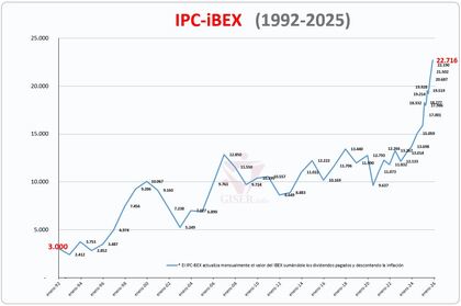 El final de septiembre trae otro mes espectacular en la bolsa española. El índice IBEX PC (que, a diferencia del ordinario IBEX 35 suma los dividendos cobrados, y descuenta la inflación) está, una vez más, en máximos históricos. Y por mucho.