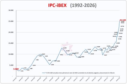Una vez descontada la inflación y sumados los dividendos, la revalorización en términos reales de nuestro índice IPC-iBEX es de un increíble 53,3%, pasando de los 15.895 puntos a los 24.363.