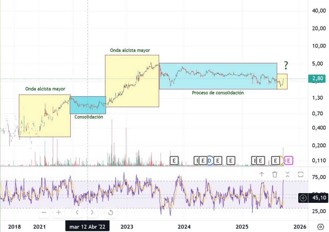 Esta o estaba en un soporte, la empresa recompra acciones 5 millones de $ canadienses están comprando, se supone pagara un dividendo entorno al 12% este año y muy alto en los próximos años pensando en repartir el enorme beneficio que dejaran la venta de los diferentes proyectos que ahora tiene en cartera.