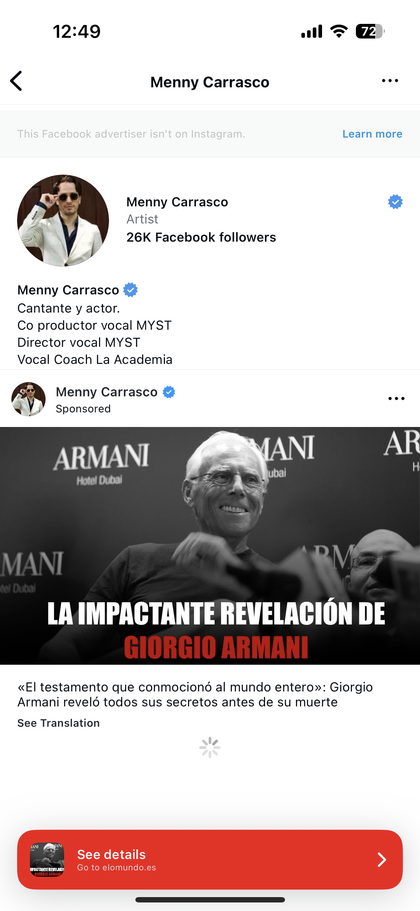 Yo tengo pantallazos de la noticia de Armani. El día que caí no los capturé, pero un par de días más tarde sí. Esta noticia la reposteaban personajes públicos "fiables" pero poco conocidos para que la gente se pensara que la noticia de Armani era verídica (yo creo que les entraron a sus cuentas, o aún peor, son colaboradores. Escribí a uno que es un cantante y nunca contestó). En fin, estoy muy interesado en que como mínimo les cierren el chiringuito. Dime cómo quieres que te mande las imágenes para complementar la denuncia. ¡Ánimos y Considerémoslo un aprendizaje!