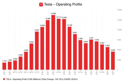 Las utilidades de tesla llevan 3 años cayendo