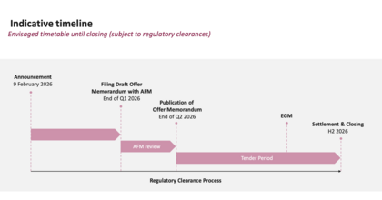 Prima ofrecida: La propuesta representa un 50% de prima respecto al precio de cotización del 2 de enero de 2026 (10,4 €).