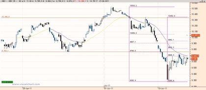 Para el largo plazo esto todo en el aire por fundamentales pinta muy mal y si partimos que los fundamentales son los que determinan la evolucion de la bolsa en el largo plazo , creo que no se han visto los minimos en el Ibex estos pueden rondar los 8560 claro siempre y cuado no revolotee un Default en la deuda española . objetivamente España en base a sus fundamentales no deberia llegar a esa situacion pero los que mandan son los mercados y si estos machacan a la deuda española y se mantiene el diferencial por encimma de los 300 puntos durante largo plazo y ni que decir que si la rentabilidad supera los 7% entonces el Default es seguro , pero lo dicho por fundamentales seria injusto que llegaramos a esa situacion extrema , pero con la desconfianza que genera ZP hacia los mercados todo es posible , por cierto el Ibex esta superando los 9634 y el EUR/USD se dirige hacia los niveles comentados y a esto se suma una buena acogida de la emision de la deuda italiana podemos tener un cierre bonito en el Ibex hoy sobre los 9750 o incluso superior