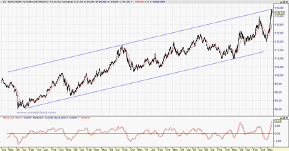 Quizás sea buen momento para ponerse corto en el Bund. Además la probabilidad de que la Bolsa suba aumenta ya que últimamente los movimientos son contrarios.