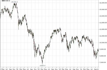 Cada vez parece más probable que estemos atrapados en un mercado bajista al estilo japonés, donde breves despuntes alcistas en las bolsas van seguidos de nuevos colapsos. A finales de diciembre de 1999, el índice FTSE 100 batió su máximo histórico de 6.930. El viernes bajó por debajo de los 5.000. Poca gente apostaría por que sobrepasara próximamente su máximo alcanzado en su última sesión del siglo pasado. Al contrario, algunos expertos de la City están pronosticando ahora que el índice FTSE 100 se dirige hacia los 4.500 o incluso los 4.000.