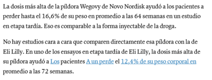 Esta solicitud incluye datos del ensayo de fase III STEP UP, según el cual los adultos obesos que tomaron semaglutida 7,2 mg según lo indicado perdieron una media del 20,7 % de su peso corporal, según el laboratorio danés.