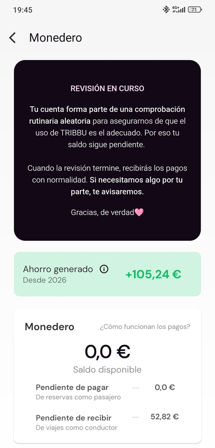 La verdad que lo de tribbu es flipante. Dejé de usar ciclogreen porque no pagaban y ahora se han puesto muy profesionales. A ver con tribbu qué pasa finalmente