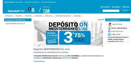 Esto se anima... Depósito Mediterráneo on line 3,75 % TAE a 12 meses. Promoción verano. Contratación exclusiva por CAM Directo Internet.