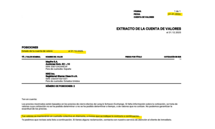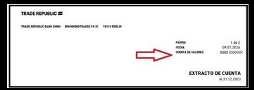 No tengo acciones en Trade pero si tengo efectivo. Si saco la posición de mi cuenta de valores que lógicamente sale a 0, la dirección es la de TradeRepublic en España. El número de cuenta es de 10 dígitos para construir el número de cuenta completo habría que añadir el de la entidad ,Dc y sucursal, en este caso en España.