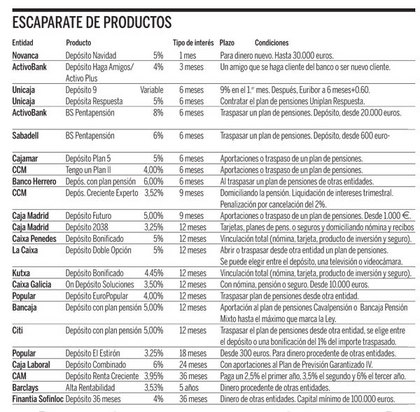 Destaca el deposito creciente de la CAM a 36 meses al 3,95% tae global, finantia al 4% 36 meses minimo 100.000 € y Barclays al 3,53% tae a cinco años.