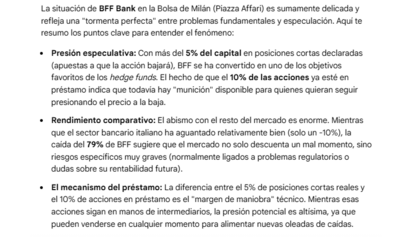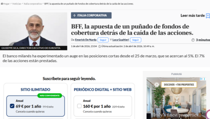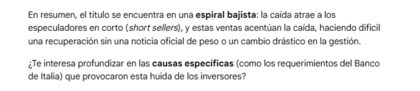 #23283 Re: Cuenta Facto 2018 Ver mensaje de Acropolis iusticia Seguir 02/04/26 16:21 En este articulo de Milano Finanza ya vemos en su editorial que está la acción totalmente en manos de los cortos en pura especulación.No puedo mostrar el articulo completo pues no estoy suscrito al periódico. Responder